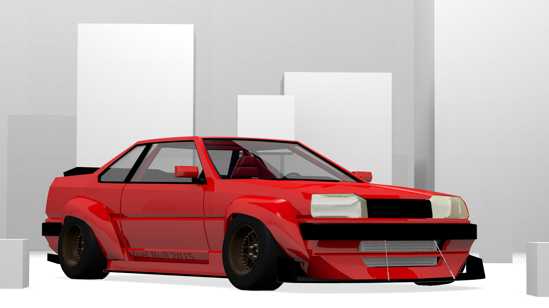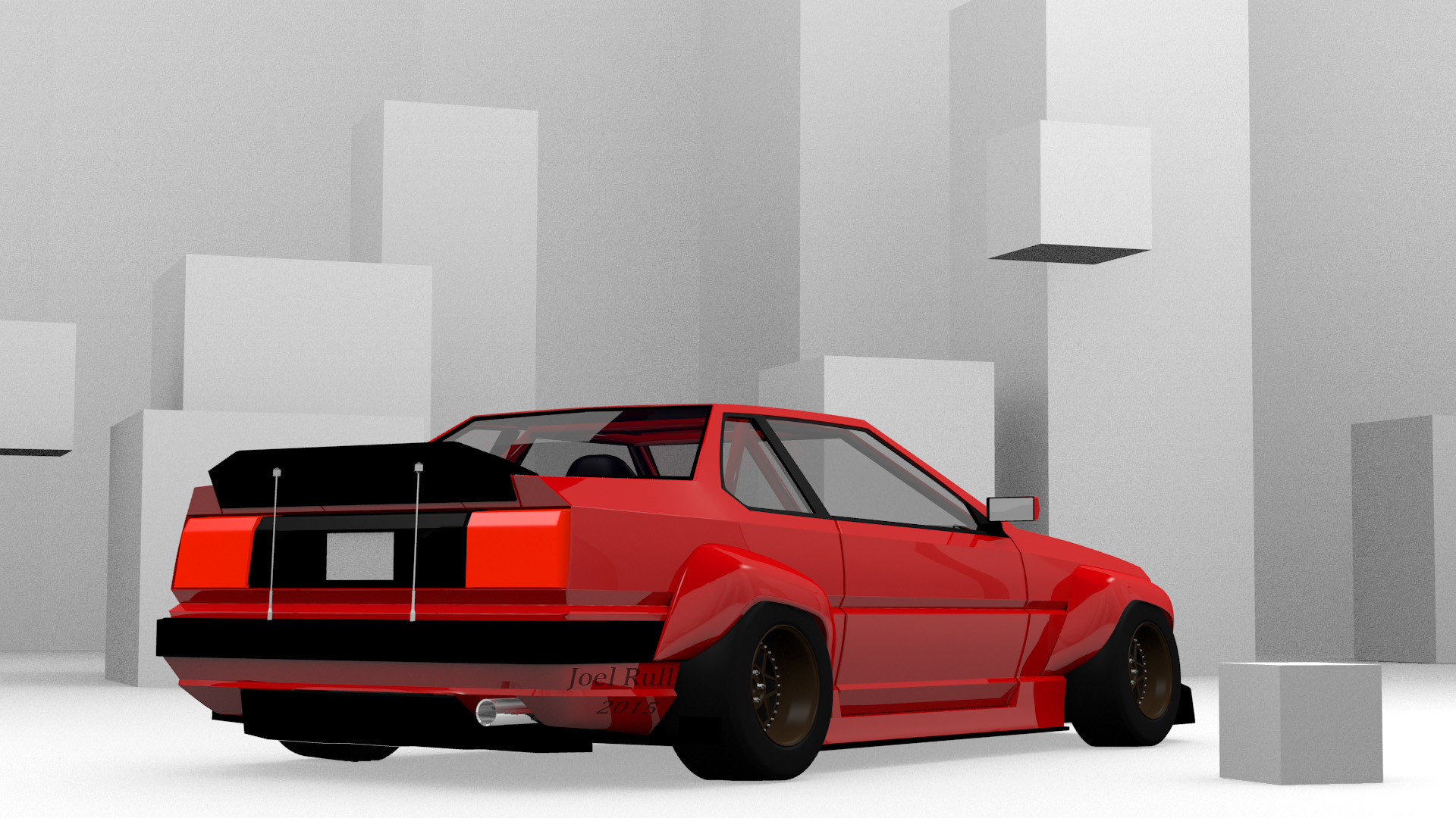 I figured, somewhat mistakenly, than an 80’s car with lots of straight edges would be easy to start with. But even really boxy cars have slight curves to them and that must be taken into consideration for the design to look plausible. The fender flares are supposed to look like they’ve been slapped on with self-tapping screws and maybe zip ties, as is correct for the genre (which I sort of made up).