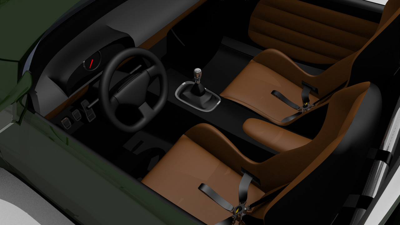 I think it will be a while before I tackle a full interior again. Definitely won’t go into it without at least a few sketches. I could say it’s minimalist as befits a track car, but in my mind this is a derivation of a premium-brand sports coupe, so the interior should look a bit higher-rent.