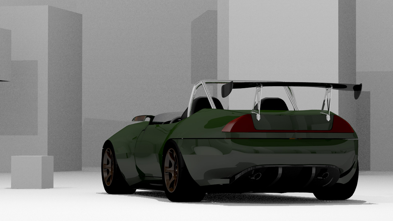 Again, sports car. But more of a gentleman’s turnkey track toy this time, so it’s a bit more polished, like a Lotus 2-eleven. The original intention was to move forward a decade and do a mid-90’s design but somewhere along the way (probably due to insufficient planning and sketching) it took a mid-00’s turn.